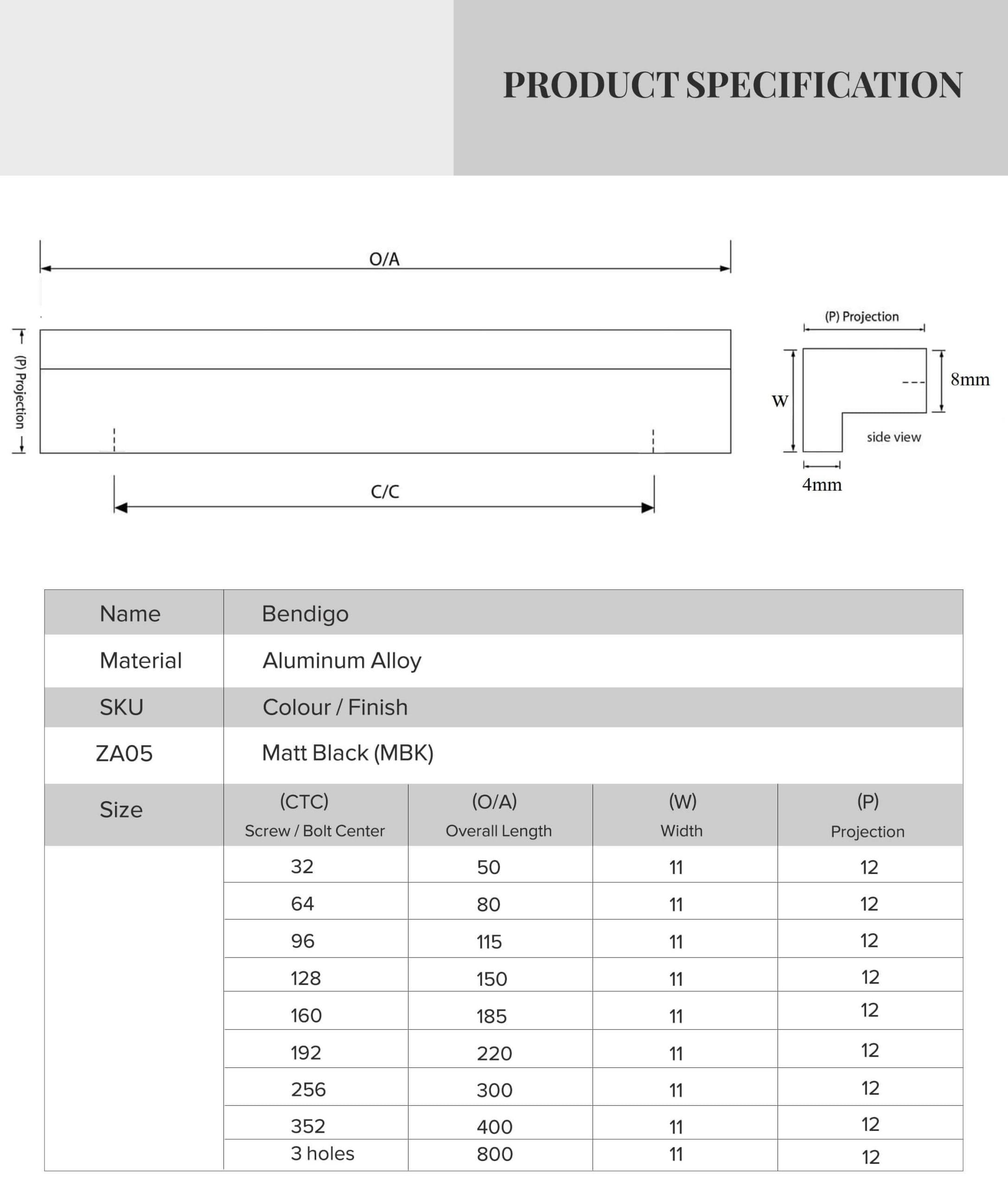 Contemporary Kitchen Drawer lip pull handles Matt Black Bendigo