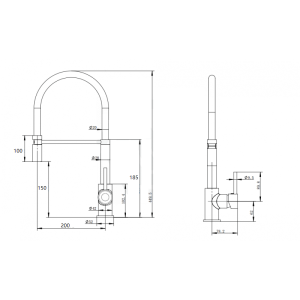 • Fully flexible rubber pull out nozzle