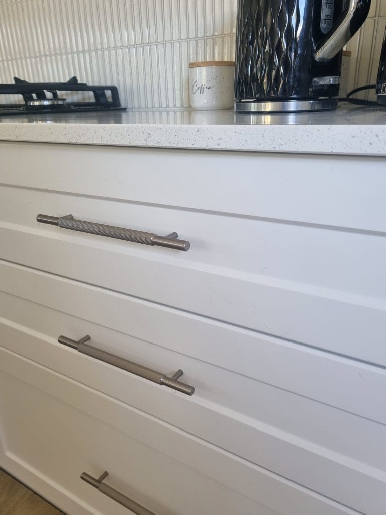 1 review for KT&CO Kitchen handles Stripe Vivonne Bay matt black / satin nickel / dark brushed brass/ champagne