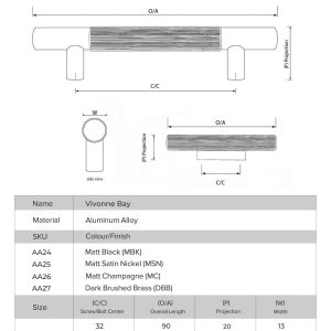 | Colour | Black, Brass, Champagne, Nickel |